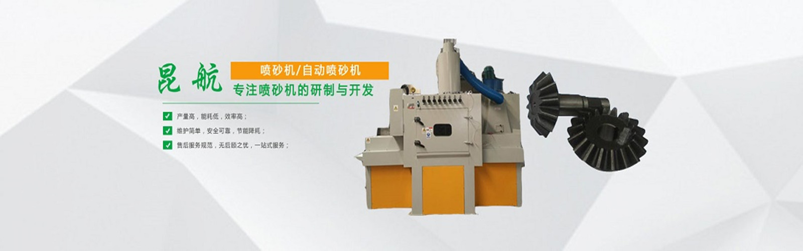 ? 【聯(lián)系電話:13816595840】上海昆航機(jī)械科技有限公司核心產(chǎn)品是表面處理噴砂機(jī)、表面清洗設(shè)備、表面噴涂涂裝設(shè)備的核心供應(yīng)商,行業(yè)知名高新技術(shù)企業(yè)。公司主要產(chǎn)品有噴砂機(jī),自動(dòng)噴砂機(jī),手動(dòng)噴砂機(jī),液體噴砂機(jī),噴砂房,干濕噴砂房,拋丸機(jī)等產(chǎn)品。昆航科技坐落于經(jīng)濟(jì)前沿上海,公司創(chuàng)始之初,就定下以技術(shù)為核心,以使命為根本,智造出節(jié)能環(huán)保的表面處理、清洗、涂裝類產(chǎn)品,奉獻(xiàn)社會(huì),造福人類。公司優(yōu)勢(shì)產(chǎn)品:大型噴砂房和非標(biāo)自動(dòng)噴砂機(jī)領(lǐng)域有顯著技術(shù)優(yōu)勢(shì)... [MORE + ]